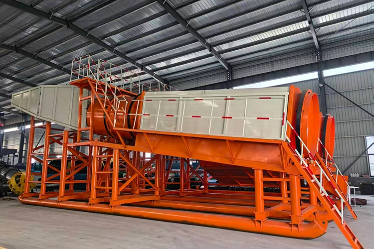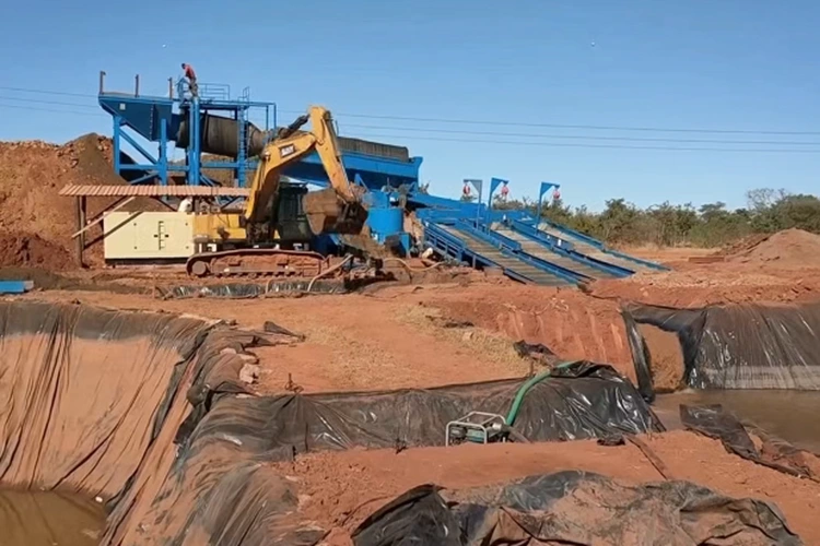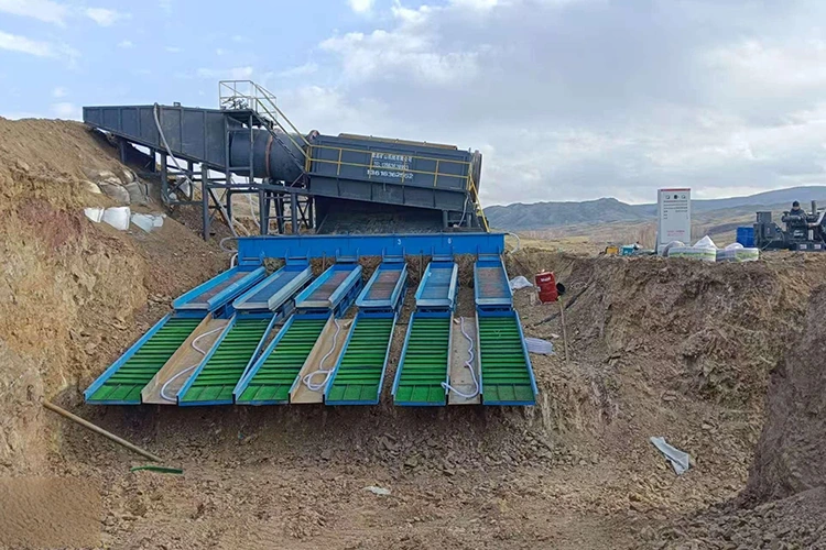 ಮೊಬೈಲ್ ಚಿನ್ನದ ಗಣಿಗಾರಿಕೆ ಘಟಕ: ಇದು ಭೂ-ಆಧಾರಿತ ಪ್ಲೇಸರ್ ಚಿನ್ನದ ಗಣಿಗಾರಿಕೆಗೆ ಮುಖ್ಯ ಸಾಧನವಾಗಿದೆ, ಇದು ಹೊಂದಿಕೊಳ್ಳುವ ಸ್ಥಳಾಂತರವನ್ನು ಒಳಗೊಂಡಿದೆ. ಇದು ಆಹಾರ, ಸ್ಕ್ರೀನಿಂಗ್ ಮತ್ತು ಚಿನ್ನದ ಪ್ರತ್ಯೇಕತೆಯ ಪೂರ್ಣ-ಪ್ರಕ್ರಿಯೆಯ ಕಾರ್ಯಗಳನ್ನು ಸಂಯೋಜಿಸುತ್ತದೆ. ಟ್ರೊಮೆಲ್ ಪರದೆಯಿಂದ ಕಲ್ಲುಗಳನ್ನು ತೆಗೆದ ನಂತರ, ಅದಿರು ಸ್ಲರಿಯನ್ನು ಸ್ಲೂಸ್ ಬಾಕ್ಸ್ಗಳು ಮತ್ತು ಕೇಂದ್ರಾಪಗಾಮಿ ಸಾಂದ್ರಕಗಳಂತಹ ಸಾಧನಗಳಿಂದ ಬೇರ್ಪಡಿಸಲಾಗುತ್ತದೆ.